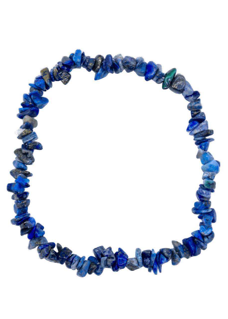 Awaken your inner wisdom with this striking Lapis Lazuli chip bracelet. Each deep blue stone chip is flecked with shimmering gold pyrite, symbolizing truth and enlightenment.